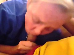 My friend's mother gives me a blowjob and gets plastered in cum